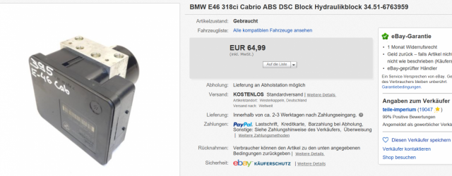 "Es gibt einen Anbieter, der die SG repariert und der auch damit wirbt, dass nichts programmiert werden muss, da man ja sein eigenes Gerät zurück bekommt. Man muss aber die gesamte Einheit ausbauen und hinsenden, also inkl. Hydroaggregat und das ist mir zunächst einmal zu viel Aufstand, um ehrlich zu sein."