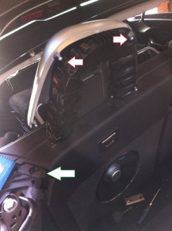 - also schwarze Plastik Abdeckung hinter Mittelkonsole nach oben abziehen (nur geklipst) und darunter liegende Schrauben lösen (soweit easy)