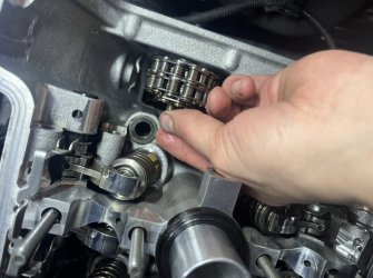 Die beiden Schnittstellen zum Kettenkasten noch mit 3Bond Dichtmasse bestrichen⊠den Kopf kurz vorher auch nochmal 3 mal entfettet⊠neue PasshĂŒlsen in den Block gesetzt und dann ging es los.