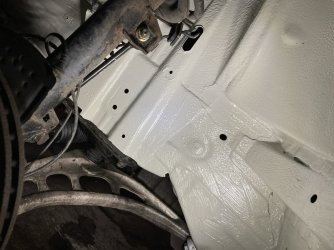 -Alle zuvor gerosteten Stellen und neuen Schweißstellen mit Rostumwandler + Ovatrolöl ordentlich einge"jaucht" und nach einem Tag ablüften lassen noch eine Schicht Ovatrolöl drauf. Auch auf pontentiel gefährdete Stellen wurde Ovatrolöl gestrichen. Also stellen, die noch super sind.