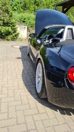 die heutige Fahrt in den Sonnenuntergang wurde leider plötzlich unterbrochen. Plötzlich die rote Leuchte auf der Instrumententafel, Wassertemperatur im roten Bereich. Angehalten, Motorraum auf, Lüfter läuft auf Hochtouren. Schnell fiel der Schlauch Nr. 2 ins Auge durch den kleinen Springbrunnen. Ein Loch groß wie eine Stecknadel gab einen feinen aber ordentlich drückenden Wasserstrahl ab.