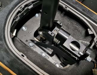 Der Teppich ist für Automatikfahrzeuge schon perforiert, einfach ausreißen(kann dann auch wieder rein). Im Tunnel kann die Versteifungsplatte mit den Gewindeinserts des Direct Fit-Kits einfach unter die Schallisolierung geklemmt werden, dann braucht man auch keine 2. Person zum verschrauben der Grundplatte. Dann Schifter auf der Grundplatte verschrauben, einhängen, Schalten, freuen, fertig.