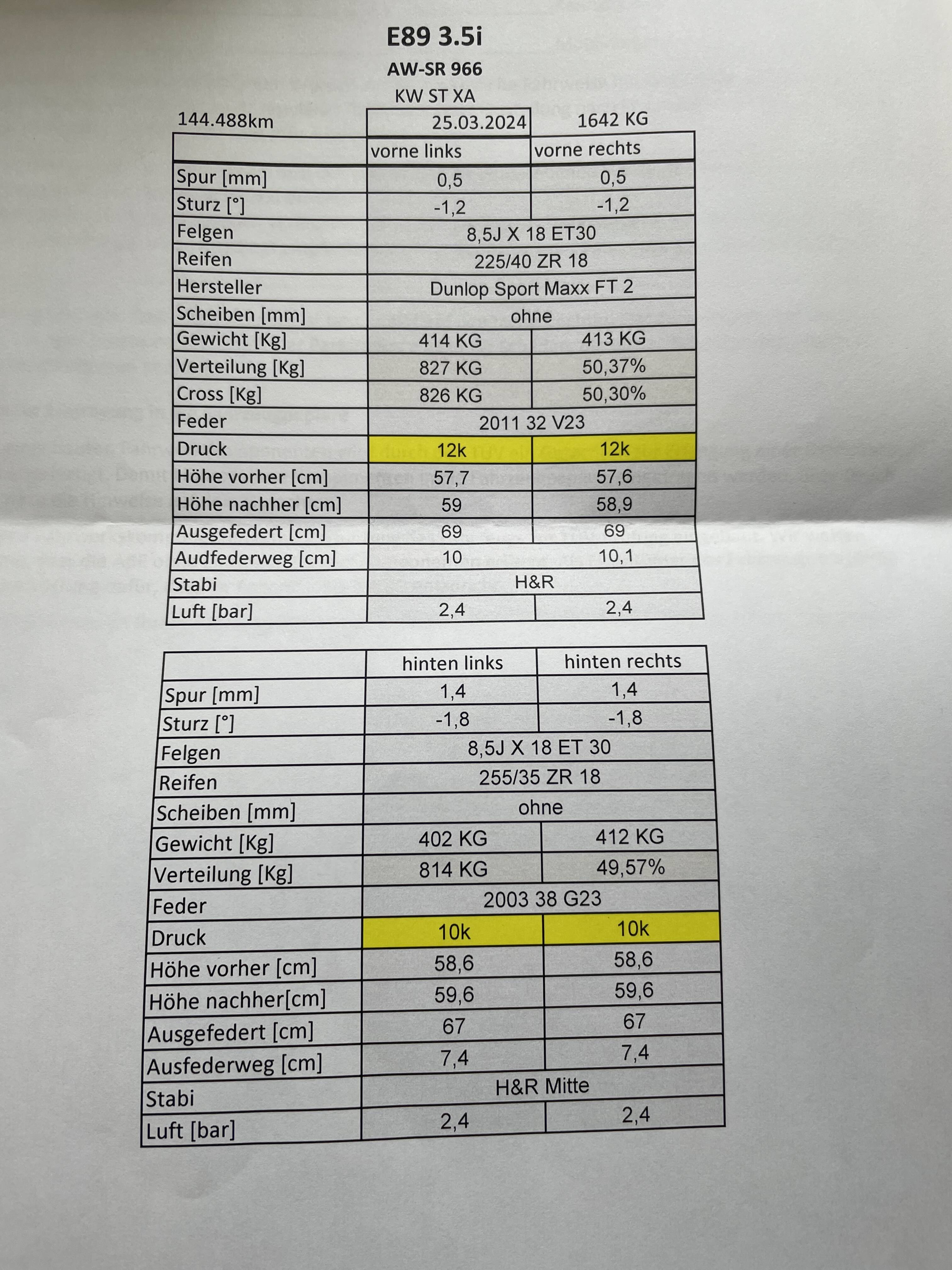 Fahrwerkseinstellungen direkt nach FW-Einbau Bild1