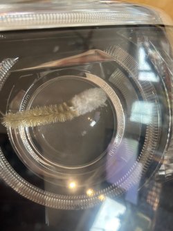 Das ist mal eindeutig. Gibt es eine Möglichkeit mit einem z.b. flexiblen Stück Draht, dessen Spitze mit Schrumpfschlauch und einer Stück Stoff präpariert wurde in den vorderen Bereich der Scheinwerfer zu kommen? Vielleicht über den Halogen Schirm neben der Xenon Linse. Zumindest würde es nach deinen Bildern zu urteilen einen sofortigen Aufschluss darauf geben, ob hier der Grund für die müden Augen zu finden ist.