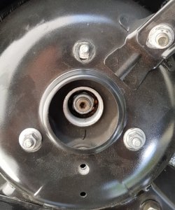 2.Dorn oben mit einem Imbus raus schrauben, die 3 13er Muttern lösen, das Federbein händisch, und wenn es etwas klemmt auch gerne mit dem Fuß ins Radhaus rein drücken, auf anschlag, was du ja oben an den längslöchen siehst. Dann beim rein drücken oben mit einer Mutter fixieren, also fest schrauben oder möglichst gleich alle 3 Muttern fest schrauben eh du unten wieder den Druck gegen das Federbein los lässt.