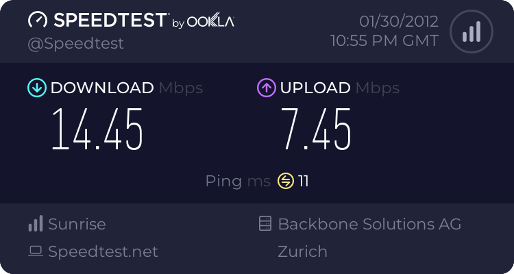 Gleichfalls zurückBei uns sind es ~10 MB Upload und ~50 MB Down, das in einem 1300 Seelendorf, aber zum