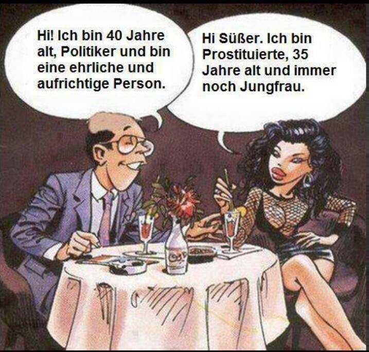 “Mein lieber Ehemann: Ich habe Dein Fax erhalten und danke Dir sehr für Deine Ehrlichkeit. Bei dieser Gelegenheit möchte ich Dich daran erinnern, dass Du mittlerweile auch 54 Jahre alt bist. Gleichzeitig möchte ich Dich darüber informieren, dass, während Du diesen Brief liest, ich mit Michel, meinem Tennislehrer, der wie Deine Sekretärin auch 18 Jahre alt ist, im Hotel Fiesta sein werde. Als erfolgreicher Geschäftsmann und mit Deinen exzellenten Kenntnissen in Mathe, verstehst Du natürlich, dass wir in der gleichen Situation sind… jedoch mit einem kleinen Unterschied: 18 geht öfter in 54, als 54 in 18… Und darum, konsequenterweise, brauchst Du vor morgen früh nicht mit mir zu rechnen! Einen dicken Kuss von Deiner Frau, die Dich wirklich versteht…”